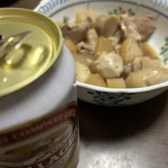 夕ごはん ラガーと豚肉と大根里芋の煮物