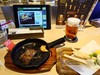 3周年特別メニュー アンガス牛の鉄板ステーキ🥩 ㊗️3周年 YEBISU BARエミオ 石神井公園店💐3周年特別メニュー アンガス牛の鉄板ステーキ🥩、第1号でオーダー😉WスタンプキャンペーンのJAZZYと共に🍺