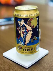蕎麦屋でエビス〜荒木飛呂彦デザイン 久し振りの蕎麦屋でちょい飲み思い掛けず、限定販売(汗)なんかワクワク