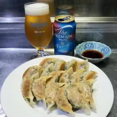 🥟にら餃子🥟 にら餃子を作りました🎵野菜はほぼにら。いつもはきゃべつメインですがたまにはにらも旨いです👍 プレモル香るエールと一緒に。エールは甘味がいいねえ🍺