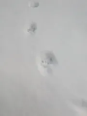 雪の中に足跡。ネコちゃんのようです。寒い一日でしたがほっこりしました。