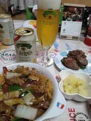 焼売を父と食す🍺 焼売で飲みたくて🍺急いで蒸して父と実食😊和奏と合わせようかと思ったけど、エーデルピルスにしてみました🍺