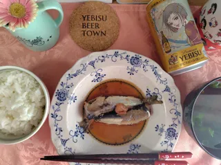 NEW イワシの梅煮とデザイン缶 たまにはお魚を食べなければと思い、イワシの梅煮を作りました。梅酢とショウガで味をととのえました。美味しかったです✨ごちそうさまでした🙏