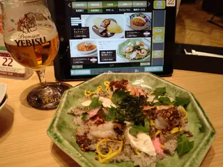 グランドメニューは変わってなかった💦 首都圏は1日からグランドメニューが変更されていますが他は15日~のようです最後にお気にいりだった真鯛と海老の焼き飯ちらしをいただきます😋