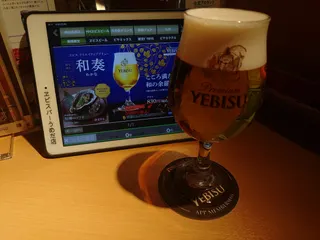 会社の同僚とYEBISUBARへ! 先日会社の同僚とYEBISUBARへ行ってきました〜!🤭名古屋サカエチカ店だけ琥珀エビスプレミアムアンバーをジョッキで頼むとくじが引ける、こういうのに弱い恵比寿天、早速注文!見事ハズレた!🥲ビアカクテルの半額券が来てたので試しに飲んでみた!やはりカクテルだけあってちょい甘い、恵比寿天はビールが一番い