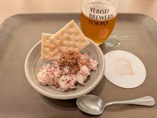 エバーホップヴァイツェンも一緒に無料🆓サービスのポテサラ今回はカッパーホライズンとエバーホップヴァイツェンをオーダーヱビスビアタウン会員特典の限定クーポンも利用しました😊ポテサラが良いアテになります。 カッパーホライズン美味しく頂けました♪ 飲んでいる時にふと館内を見ると有友さん