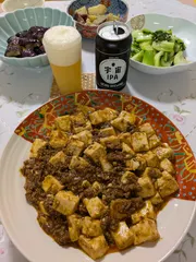 宇宙IPA ✕ 麻婆豆腐 他社さん失礼します宇宙IPAで乾杯🍻ずっと飲みたかった「うちゅうブルーイング」さん🍺調べましたら、こちらでも買えることがわかり先日買いに行ってきまして🚗💨うわ~美味しい~🍺✨✨華やかで果実感たっぷりのビール。。強めの苦味もイイ✨麻婆豆腐、青梗菜塩炒め、茄子のレンチン煮浸し、さつまいもの煮物残り、そし