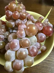 庭でとれたぶどう すっごく甘いけど、種ありでちょっと食べるのが面倒💦 でも、去年4粒入ってた種が今年は2粒!種が減った分、実の分量が増えています