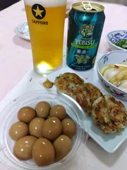 かに押し鮨とメンチカツと自家製コールスロー。 かにの押し鮨が美味しそうだったので即買い。 プラス大好きなメンチカツ。🤭 千切りキャベツに塩して水分を出した後、ギュッと絞ってマヨと酢を加えて簡単コールスローサラダを追加。😋 ヱビスビール🍺と共に。😻