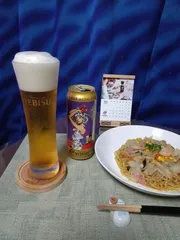 金ヱビと汁なしちゃんぽん風でした。 今日も ネタがないんで、金ヱビデザイン缶と汁なしちゃんぽん風でした。ネタではないですけど、ドジャース山本投手の完投、素晴らしかったです。美味しくいただきました。 ごちそうさまでした🙏😎👍。