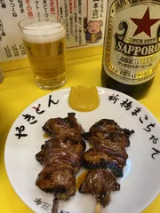 新橋の焼きトン聖地で。 どちらにしても赤星です。