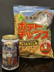 とうもろこし味ポテチと冬物語🍺❣️ ビール🍺は冬物語だけど,冬はまだ来て欲しく無い😅