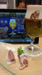 昨日の続き♪ヱビスバーで和奏💕 お店で飲むと、一段と美味しく感じるのは、なんでかな(笑)冷凍いちじくの生ハム巻きと相性良かったです😋