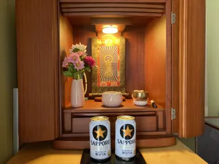 命日 父の命日なので父が大好きだったサッポロビールをお供えしてお参りしました。