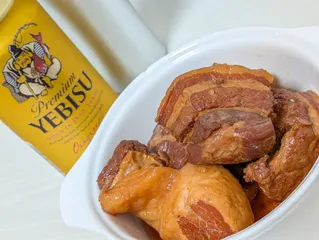 豚の角煮×ヱビス トロトロに仕上がりました!脂がすごいけどおいしいんですよね角煮って。時間かかった分、ヱビスが美味しい〜🍻✨