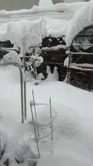 今日の庭 積雪70センチを越えています。まだまだ降っています。昨晩はコンサートの練習でオケとの初合わせがあり、長靴を履いて雪道を吹雪かれながら行きました。今日の予定の年1回の弓道の女子講習会は中止になりました。外へは出れません。