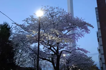 街灯に照らされて 桜が幽玄な雰囲気を醸し出しています。