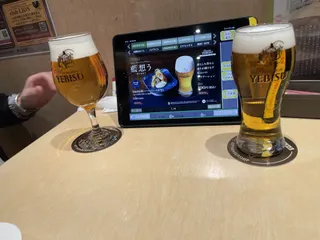 仕事終わって帰る途中のYEBISU BAR 所沢店♪仕事のお友達と♪私は藍想う♪♪♪で乾杯