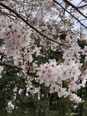 今年も大好きな枝垂れ桜さいていました。 毎年楽しみにいている枝垂れ桜、今年も綺麗な花🌸をつけていました。雨だったのが残念😢