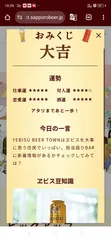 今日のおみくじ 今日のおみくじは…大吉✨️ 一言の下は…ヱビス豆知識 前同じものがでた