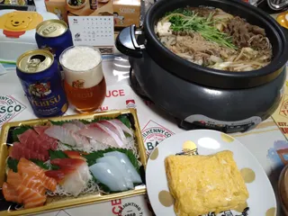 すき鍋とエールで乾杯しました😋 エアコンつけて鍋をいただきました😋