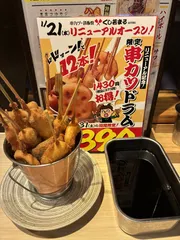 リニューアルキャンペーン 今月末まで。串カツ12本、429円。お通し不要。生中スーパードライ、319円。お得。