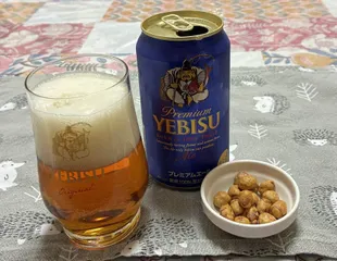 今日は疲れたのでナイトキャップにプレミアムエールを頂くことにしました。アテは豆。::おやすみなさい。