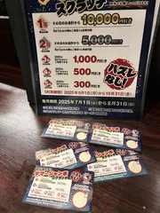 焼肉こじま スクラッチ削ってみた。3等3枚。4等2枚。1枚300円なんで、2,500円、お得。ランチタイムに訪問。半分に割る前に撮るの忘れたやっぱり赤身ハラミもゲタカルビも二刀流です