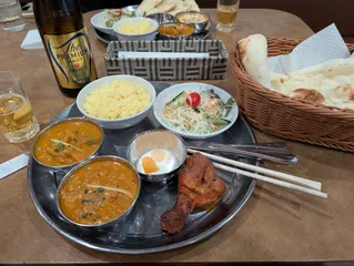 NEW 恵比寿男爵さん 入籍記念日おめでとうございます💕 奥様と二人で 末長くお幸せに❣️🙂 かんぱぁ〜い🍻🍻 カレー🍛と🫓でディナー🍽️ 羨ましいなぁ♬🤤