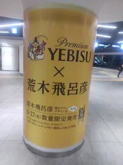 居酒屋🏮ロマンスカー 今夜はサクッとYEBISU BARで飲んでからの利用です。 荒木飛呂彦さん描き下ろしデザイン缶がNewDaysで売っていたので買ってしまいました😆 皆様1日お疲れ様でした🥹