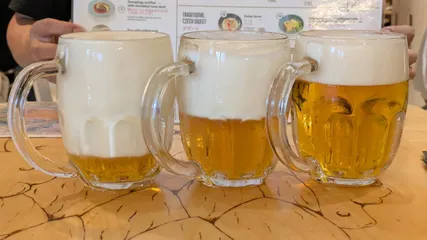 駆け込み 大阪万博に駆け込みで行って来ました。予約チケットはあったのですが、入場予約が出来ず半ば諦めていましたが、2日前に取れました。各パビリオンは満杯でほぼ入れませんでしたが、チェコビール🍺頂いて来ました。同じピルスナーですが、ミルコは専用のタップで注ぐ(と書いてあった??)ようです。*未確認情報ですので違