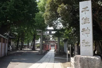 千住神社 8月31日日曜の続きです。旧千住郵便局電話事務室を越えてもう少し先に行くと、千住神社があります。まず一の鳥居です。二の鳥居です。そのそばに神楽殿があり、三の鳥居です。そこには手水舎がありました。拝殿です。拝殿と本殿です。こちらは末社のお稲荷さんです。富士塚がありました。頂上に浅間神社があります。こち