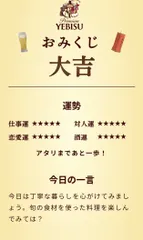 ダブル大吉 YEBISU BAR アプリでも大吉本当に今日はいいことがあるね!さあ、いい顔でいきましょう。