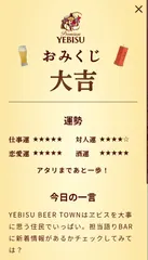 今日のおみくじ 今日のおみくじは…大吉✨️ 久しぶりに大吉ひいた 一言の下は…ヱビス豆知識だった