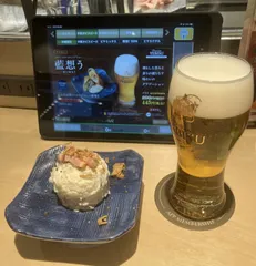 ワンビル店一周年 早いもので、ワンビル一歳誕生日🎂おめでとうございます🎊予約満杯〜🍻嵐🌀 ドリカム コンサート🎵などで人出多くて、半分あきらめムードで伺いましたが、運良く座れました🥰藍想うとポテトサラダ🥔トワイライトエール🍺で乾杯🍻