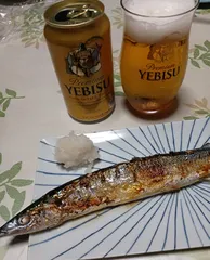 ヱビスビール🍻とサンマ🐟 ヱビス様がやって来ました🙌サンマと共にヱビスビールで乾杯です🍺✨🍺👏今日のサンマは、広告📄しかも会員割引5%で、1尾あたり、171円モチロン税込み岩手県からやって来た🚢やや小振りで脂のりはそれほどでもなかったけど美味しくいただきました🐟😋ヱビスビールはモチロン美味しかったです🍺✨🍺👏👏