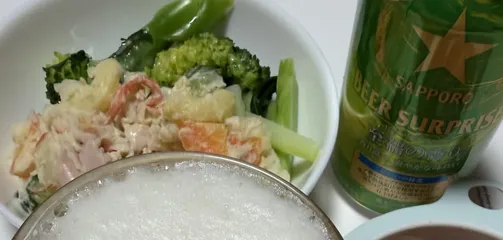 ファミマ限定個人的に軽く爽やかな味わいで好きです。爽やかなので何本でも飲めそうアイキャッチの画像ビールを継ぎ足したら中央が窪んでしまったので画像をカット🙂ビールの泡の状態は一瞬🍺難しいなぁ……