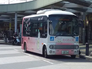 朝霞市のコミュニティバス 北朝霞駅の東口で見た朝霞市のコミュニティバス「わくわく号」です。たんぽぽなのに、なぜ桜の花びらなんでしょうか(^^;)せめてそこは空をふわふわ飛ぶ綿毛でしょう。