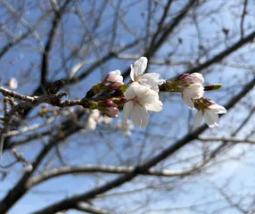 枝先に桜がほころんでいるのを見つけたよ🌸