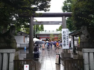 富士塚の山開き 以前ご紹介した、普段は登れない富士塚がある池袋氷川神社で、富士山の山開きに合わせて富士塚の山開きがありました。アイキャッチ画像のようにたくさんの人が集まってきていたのですが、残念ながら雨で(滑ると危ないからでしょう)登れませんでした。富士塚は社殿の左にあるのですが、ちなみに社殿の右には、七夕の短冊が