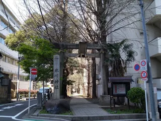 氷川神社の富士塚跡 石神井川で最後の桜を愛でた後、中山道沿いに南に歩いていたら、氷川町氷川神社がありました。奥にちらと見えるのが拝殿です。写真は撮り忘れました。境内に看板があり、読んでみるとここにも富士塚があったことが分かります。富士塚の残された部分です。たぶんこれが浅間神社だと思います。こちらが中山道で切り取られた東