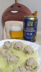 初❤️和奏 苦味も濃ゆさも、抑え気味?どんなお料理とも合いそう♪豚ヘレが安かったの1本買い!半分をミンチにして、焼売風に✨どっちもアッサリで、なかなかイケます~😋