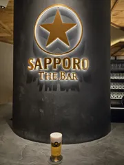カキーン(解禁)✨🍻🎶 サッポロ黒ラベルの旗が可愛い🌟旗、黒ラベルの裏は銀座スイスだった😅健康診断を終えた丸くなるな🌟星になれさんは、バリュムを飲んで数時間以上経ったのを良いことに、ビールを求める旅に出ました🍺初めて目に入ったお店はまるで黒い要塞、そしてキラリ輝く星🌟ということで、今月初の黒ラベル・ザ・バー🌟いつものように