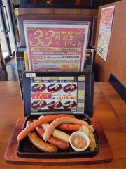顔を出せる日がこの日しかなかったので行ってみた👍11時30分オープンして直ぐに入ったら、既に3組の客が居て驚いた😮以前から知る店長が休みでガッカリしたが、気持ちを切り替えて楽しむことに👍周年メニューとしてソーセージ6種が33周年に因んで1本333円❗安いので、盛り合わせで注文してしまった