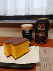 NEW カステラと黒ヱビス 長崎市・松翁軒の五三焼(ごさんやき)江戸時代、5つの全ての味を凌駕するほど美味という五味(ごみ)かすてら。そのより贅沢なカステラは後に五三焼と呼ばれました。(H.Pより)娘の旅行のおみやげです。しっとりと柔らかで上品な美味しさでした。カステラと黒ヱビス、美味しい。