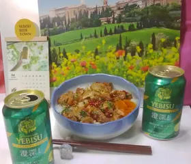 🐷かつ丼のあたま🐷 昨日は面倒だったので、とんかつの残りでかつ丼のあたまをつまみながらスーパードライでした。🍺😋👍