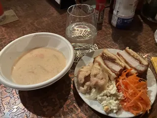 週末昼呑み② まちバル②舶来居酒屋バニーバルスペシャルプレート日本酒(純米吟醸生原酒 朝搾り)名物カツサンド、肴3種、粕汁。1,000円。めちゃくちゃうまい。めちゃくちゃお得。