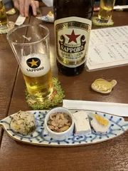 久々の呑み会🍻 同年代の仕事仲間との久しぶりの呑み会。神奈川県は藤沢市にあった有名店久昇にいた板さんがやっているお店で盛り上がりました🍻赤星に洒落たお通し、刺盛や蕗のとうの天ぷらなど、旨い肴に錫のチロリに入って出てくる燗酒に舌鼓を打ちました🍶