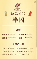 今日のおみくじ 今日のおみくじは… 半凶 一言にあるようにヱビス豆知識をチェックしてみると…