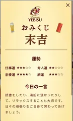 今日のおみくじ 中吉 一言の下は… ヱビス豆知識